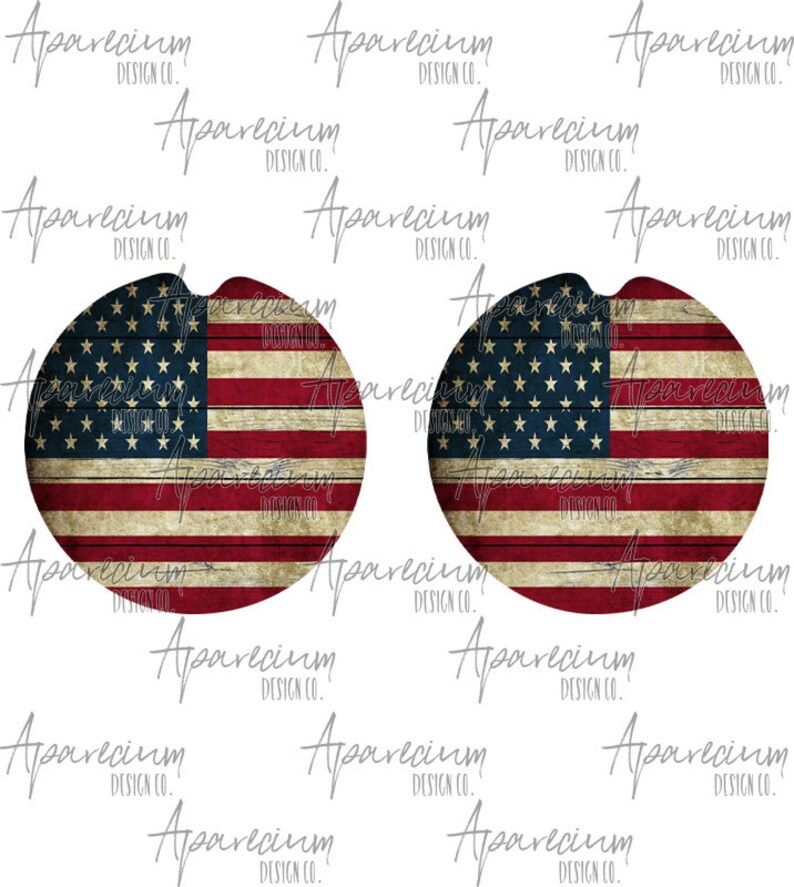 Wooden American Flag Car Coaster Sublimation Template Etsy