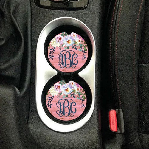 DIGITAL FILE Distressed Wooden Floral Monogram Car Coaster Sublimation