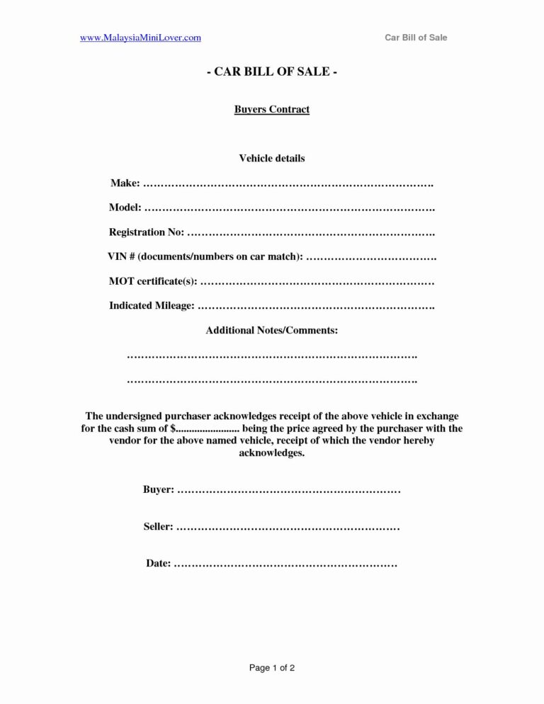 Printable Private Car Sale Receipt Template Printable Word Searches