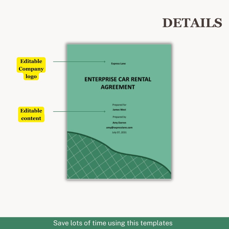 Printable Car Rental Agreement for Enterprise Editable Vehicle Rental
