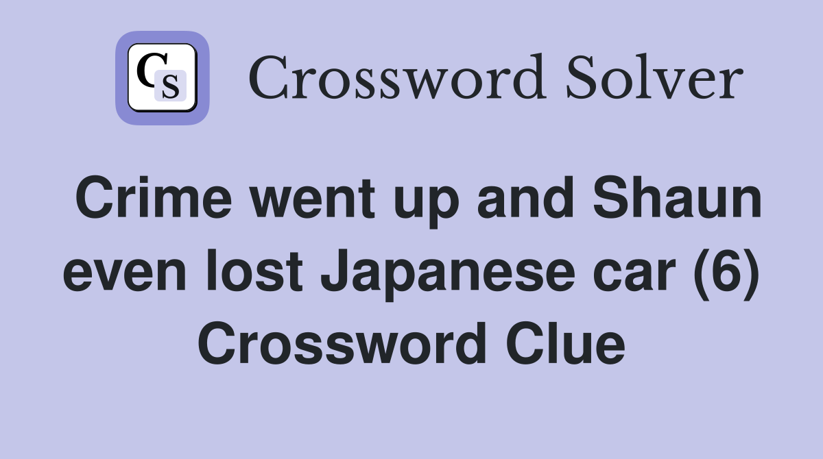 Crime went up and Shaun even lost Japanese car (6) Crossword Clue