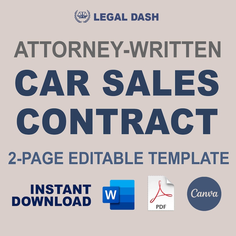 Private Car Sales Contract Template Etsy