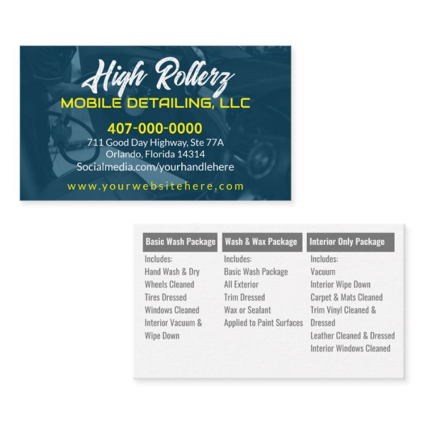 Mobile Car Wash Business Cards Customise Online Plus Free Delivery