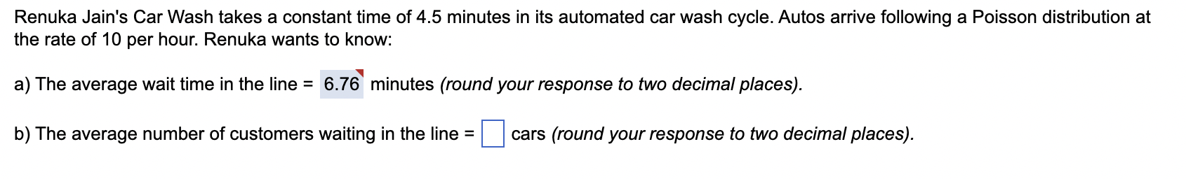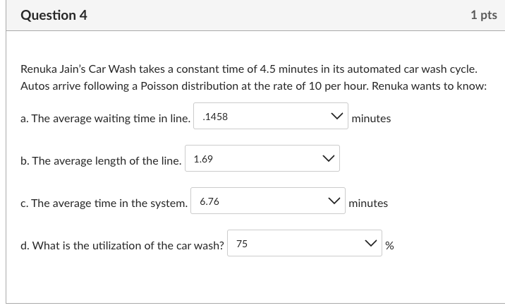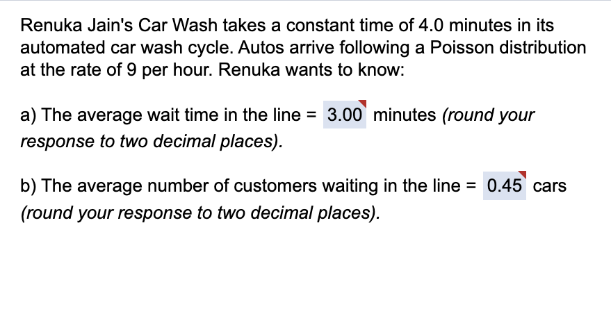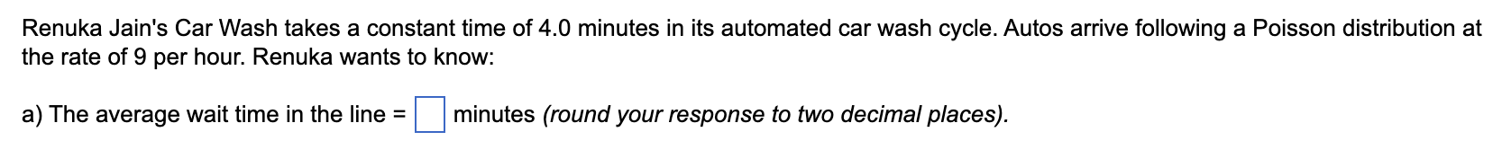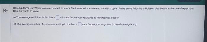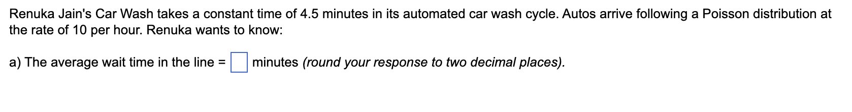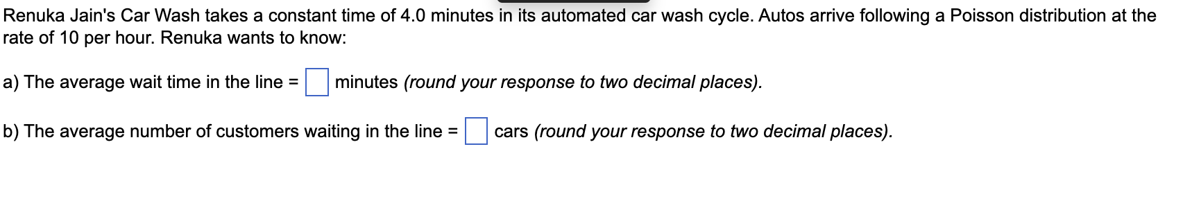 Solved 2 A car wash takes a constant time of 4 5 minutes in Chegg com