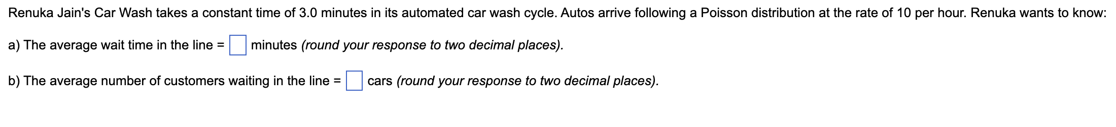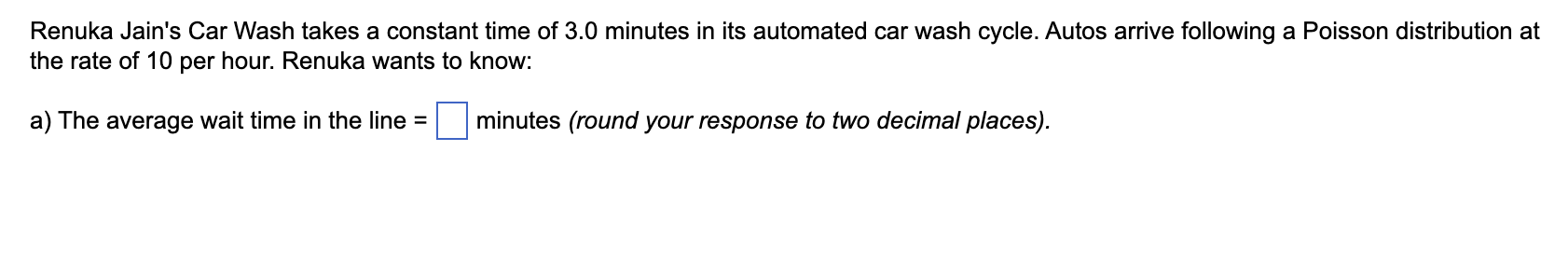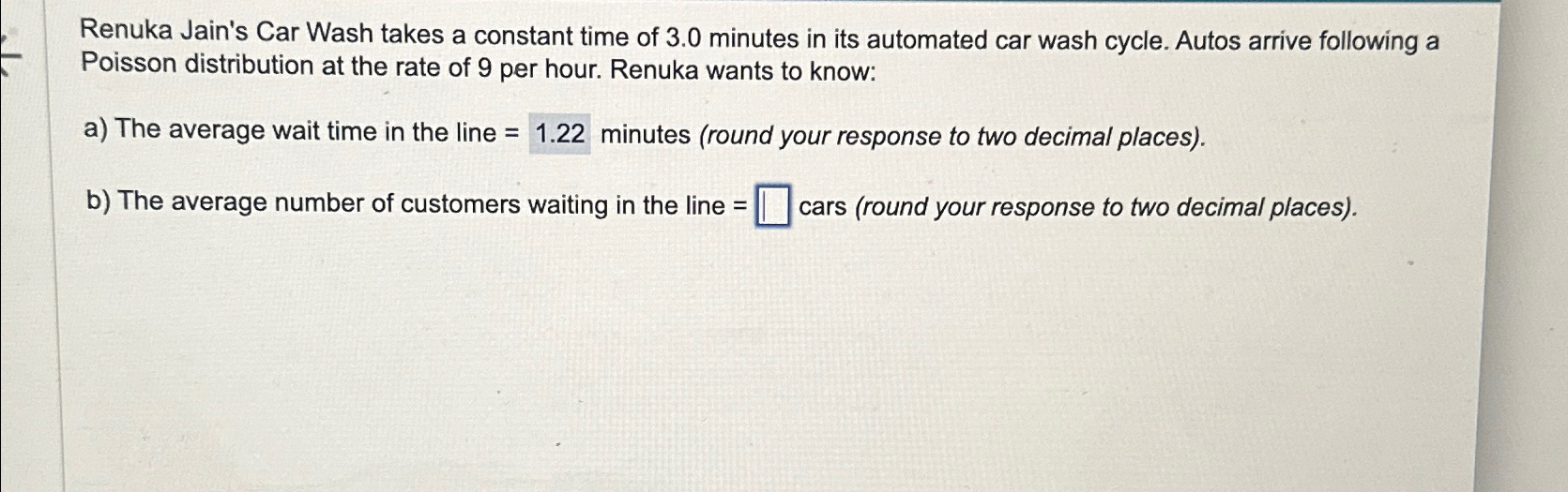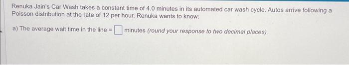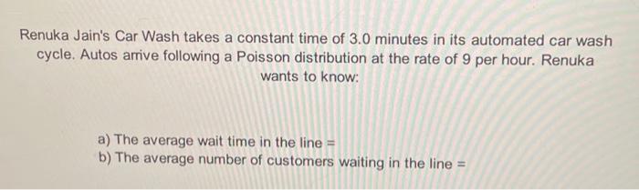 Solved Renuka Jain #39 s Car Wash takes a constant time of 3 0 Chegg com