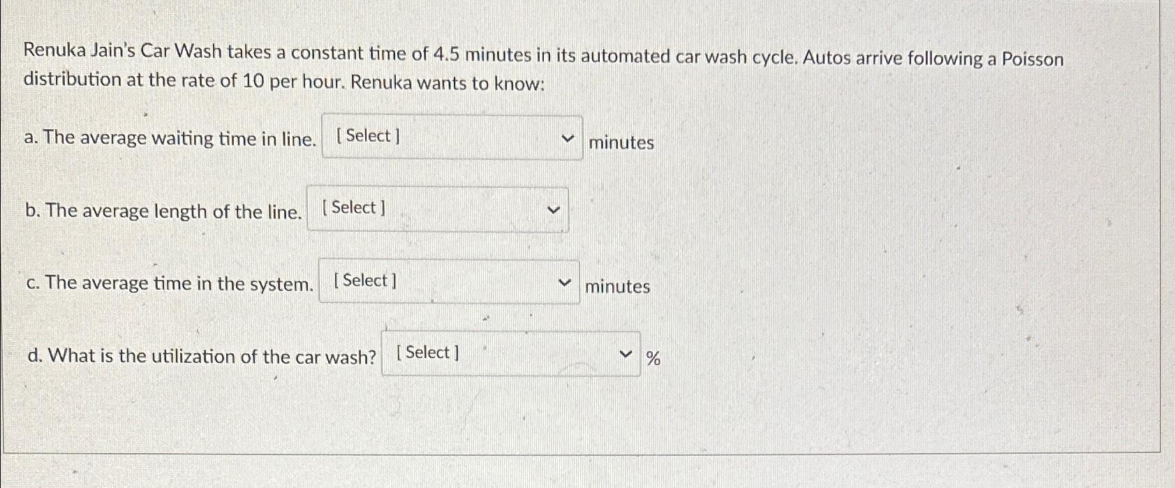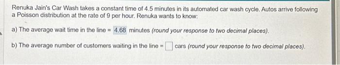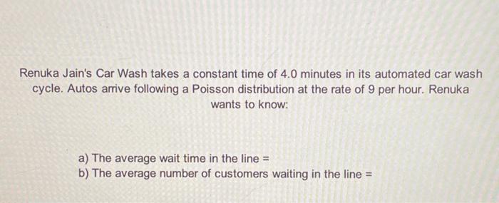 Solved Renuka Jain #39 s Car Wash takes a constant time of 4 5 Chegg com