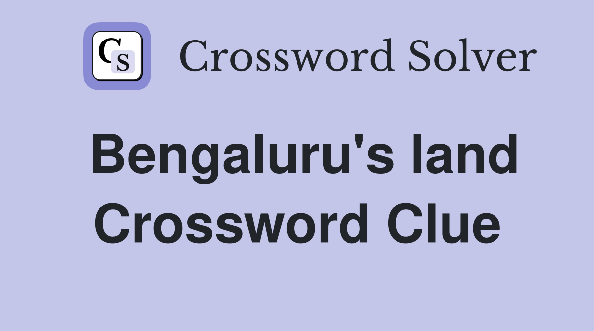 Bengaluru #39 s land Crossword Clue Answers Crossword Solver