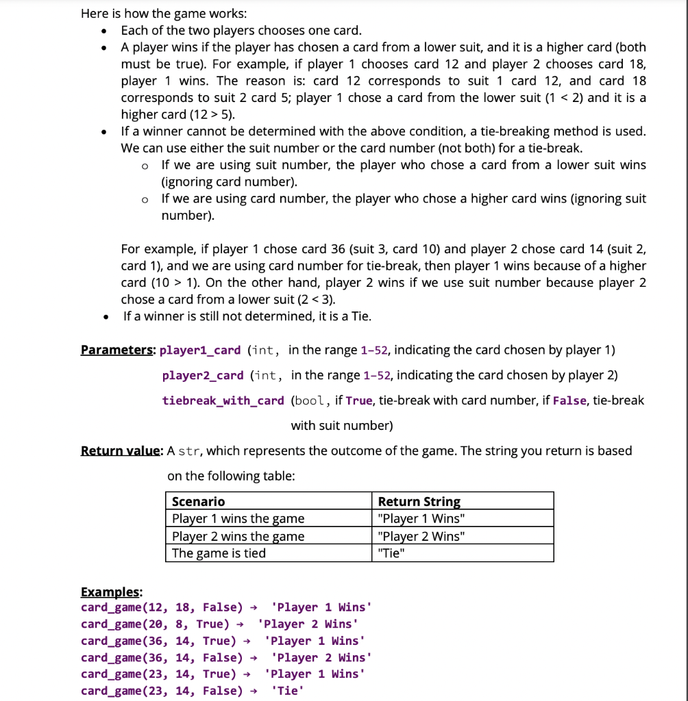 Solved def card game(player1 card player2 card Chegg com