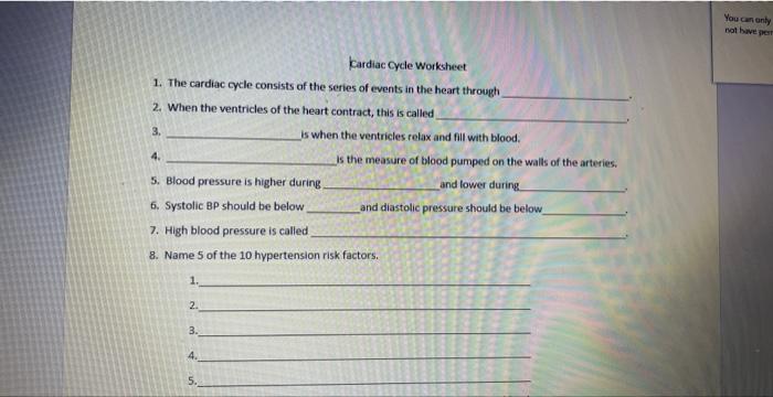 SOLUTION: A level cardiac cycle worksheet Studypool