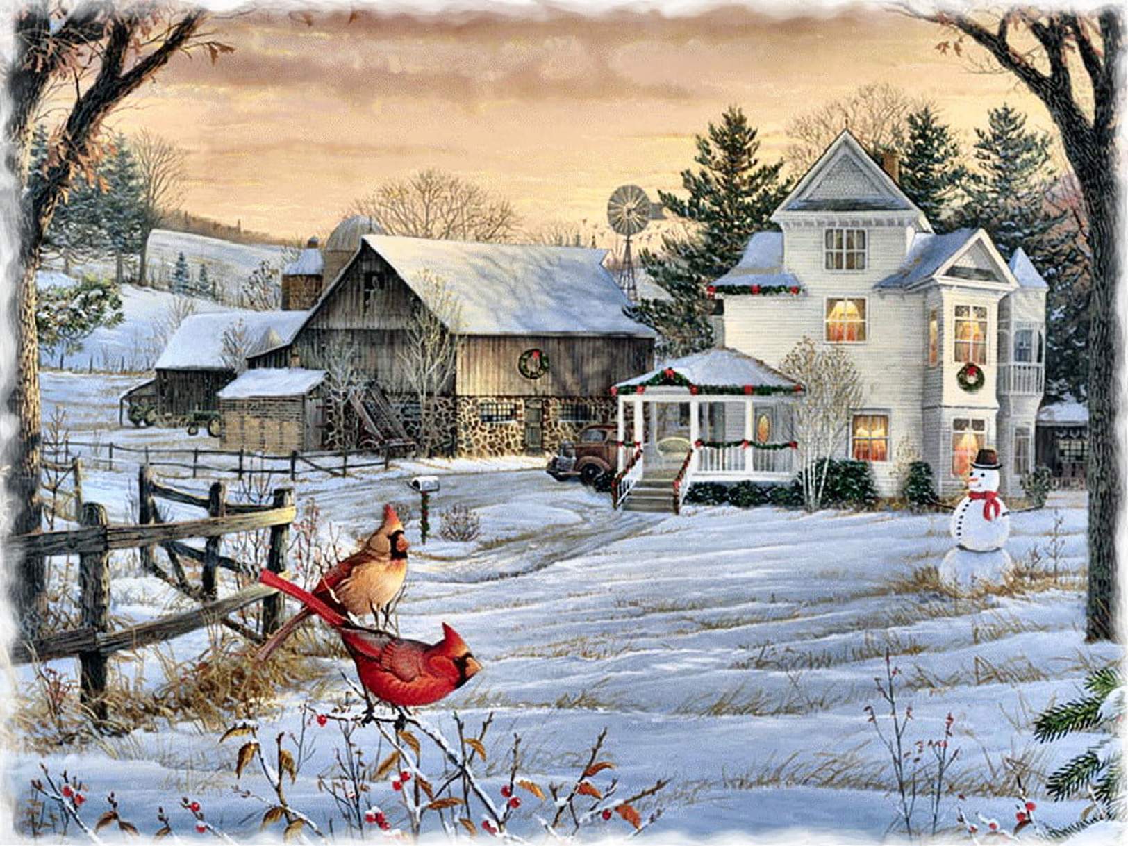 Solve Countryside Cardinals jigsaw puzzle online with 252 pieces