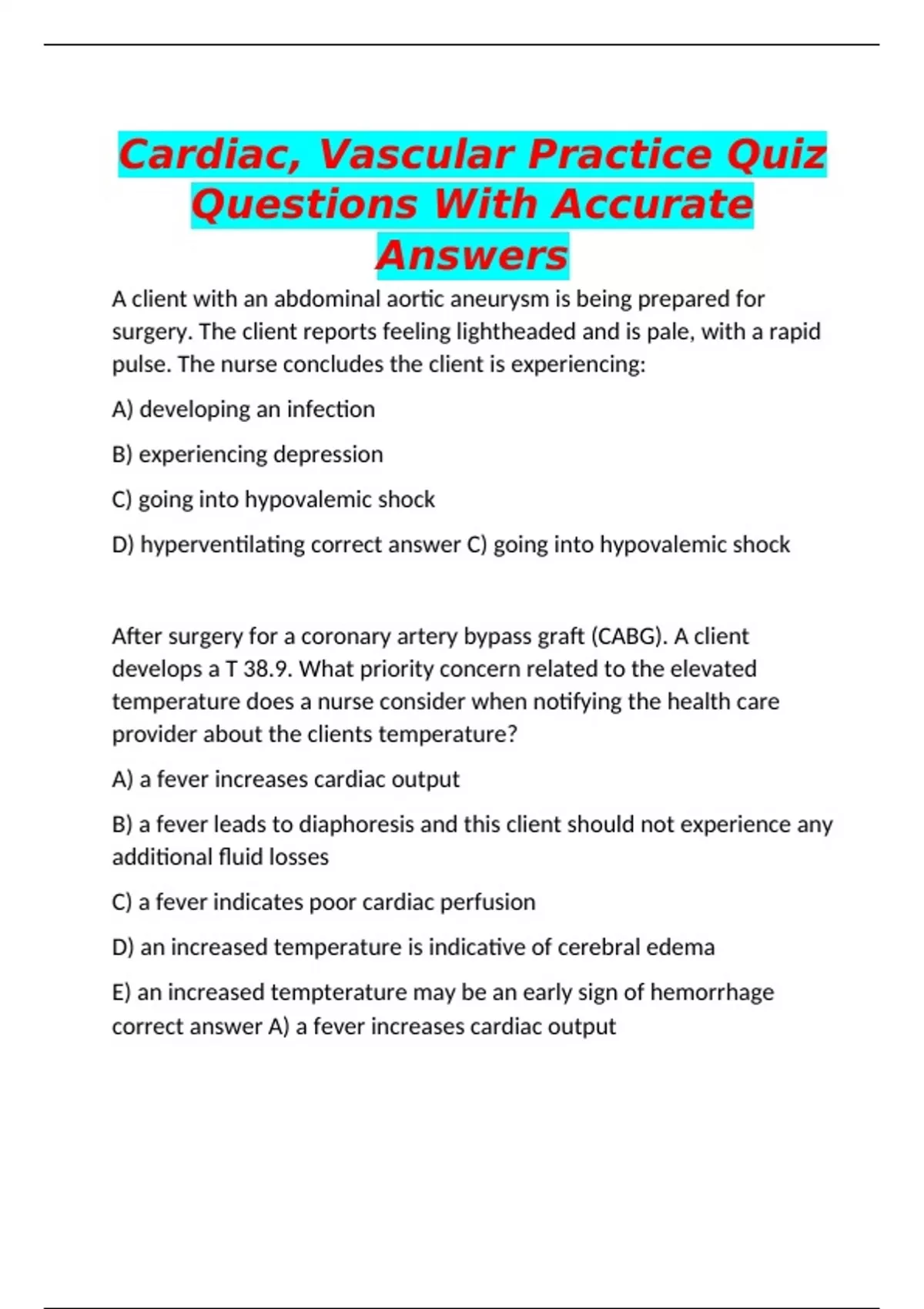 Cardiac Vascular Practice Quiz Questions With Accurate Answers