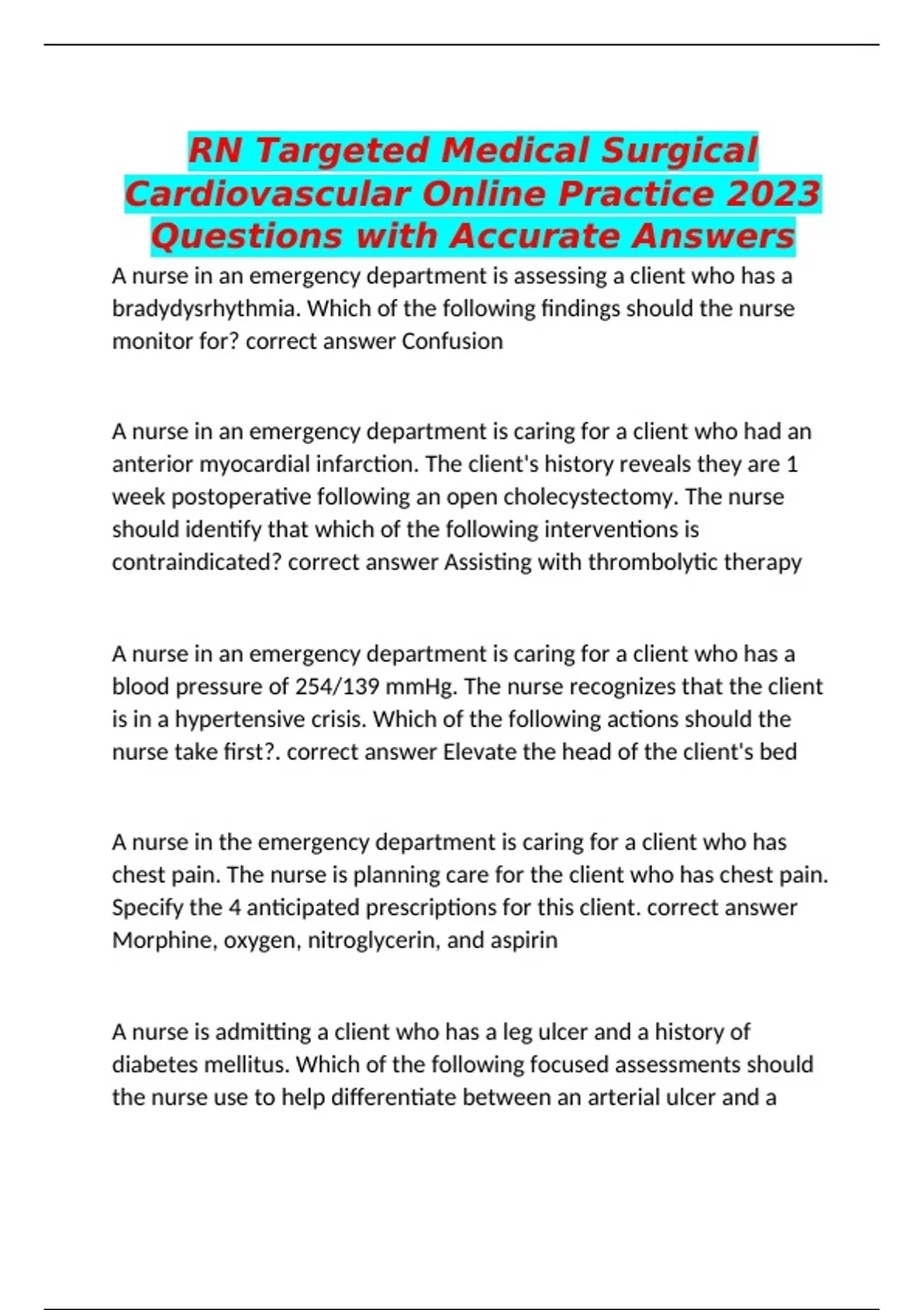 RN Targeted Medical Surgical Cardiovascular Online Practice 2025