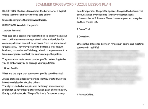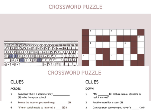 Online Safety: Scammer Crossword Puzzle and Lesson Plan (US) Teaching