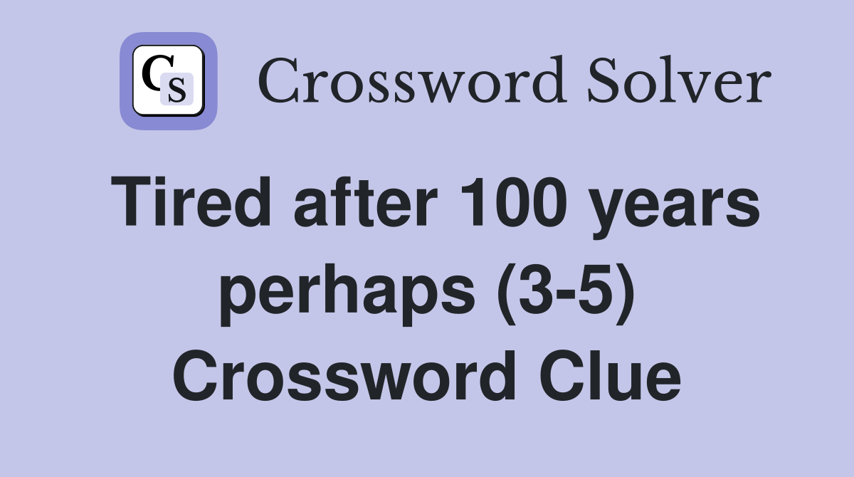 Tired after 100 years perhaps (3 5) Crossword Clue Answers
