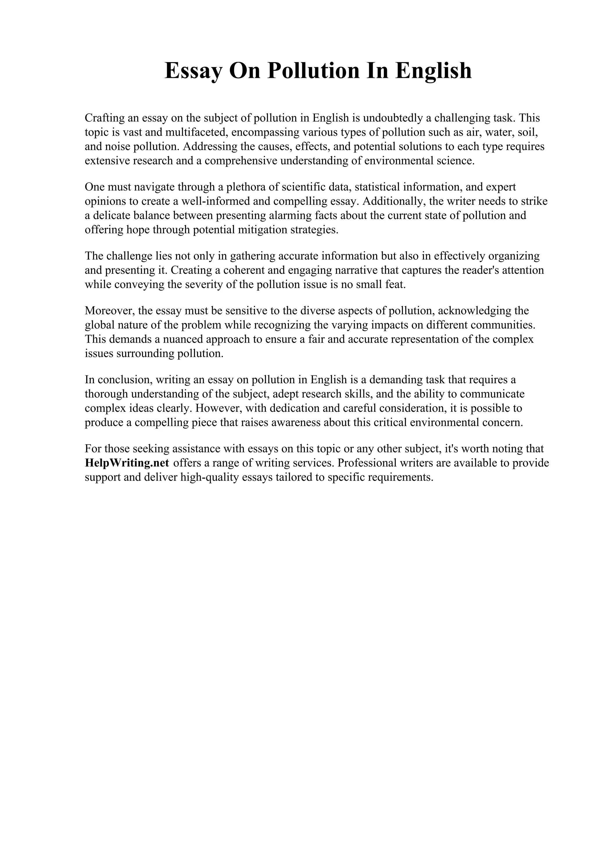 Essay On Pollution In English Haywood Community College PDF