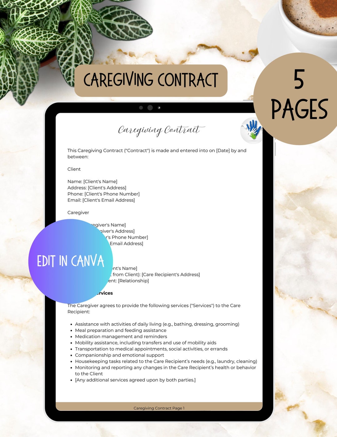 Printable Caregiver Contract Template Caregiver Agreement Etsy