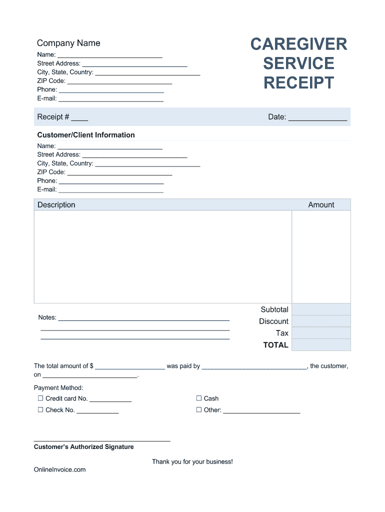 Caregiver Receipt Template