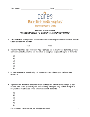Fillable Online CARES Dementia Friendly Hospitals Worksheets All
