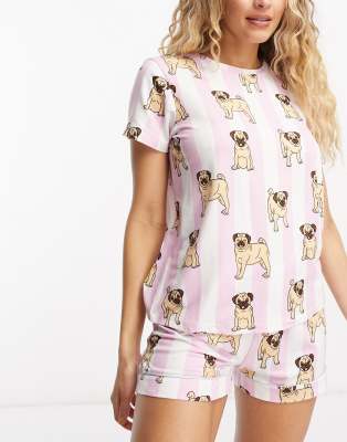 Chelsea Peers Ensemble de pyjama court à rayures et imprimé carlins