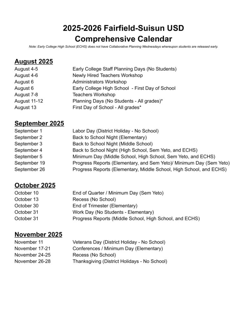 Fairfield Suisun USD School Calendar 25 26 PDF revised EduCounty