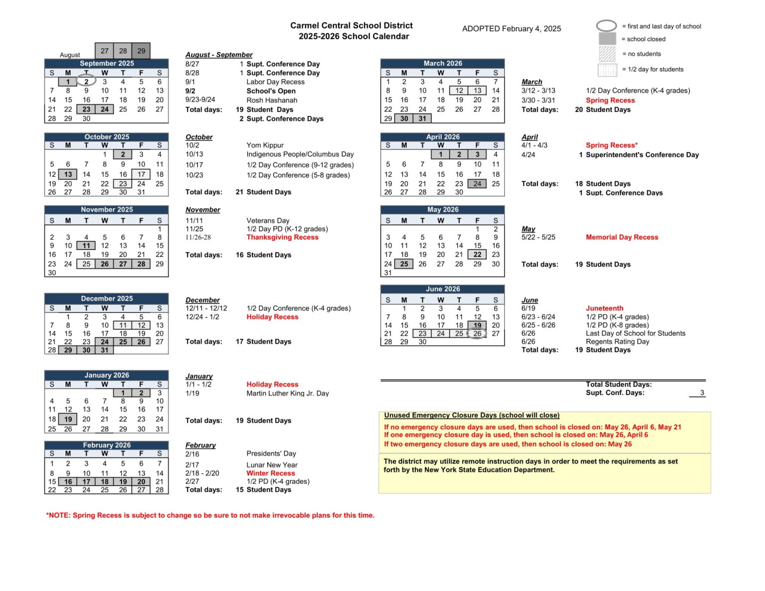 Carmel Schools CSD Calendar 25 26 revised pdf EduCounty