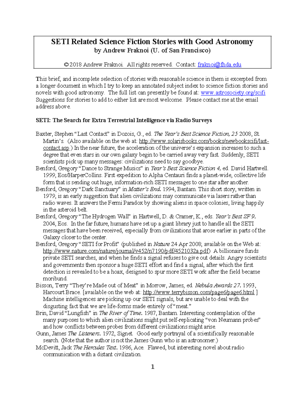 Setirelated Science Fiction Stories of San Francisco) © 2018 Andrew