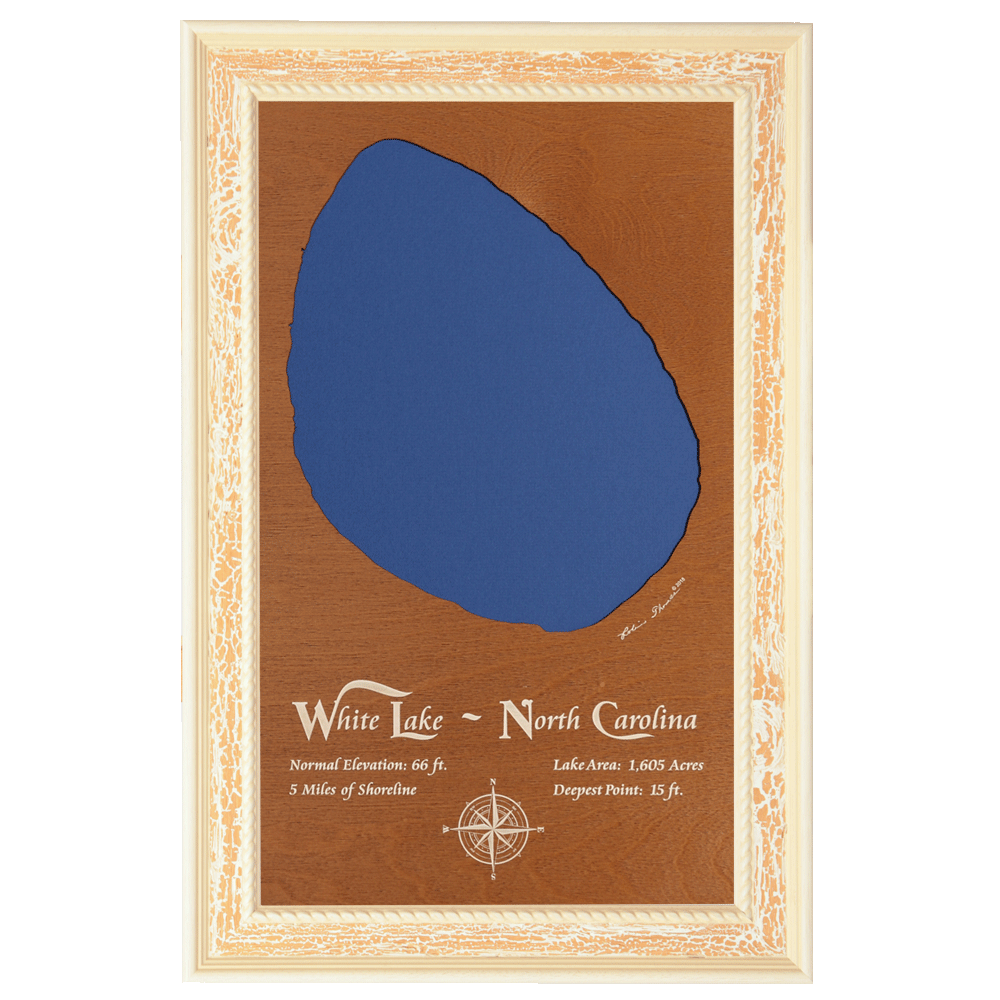 White Lake North Carolina Stained Wood and Distressed White Frame Lak