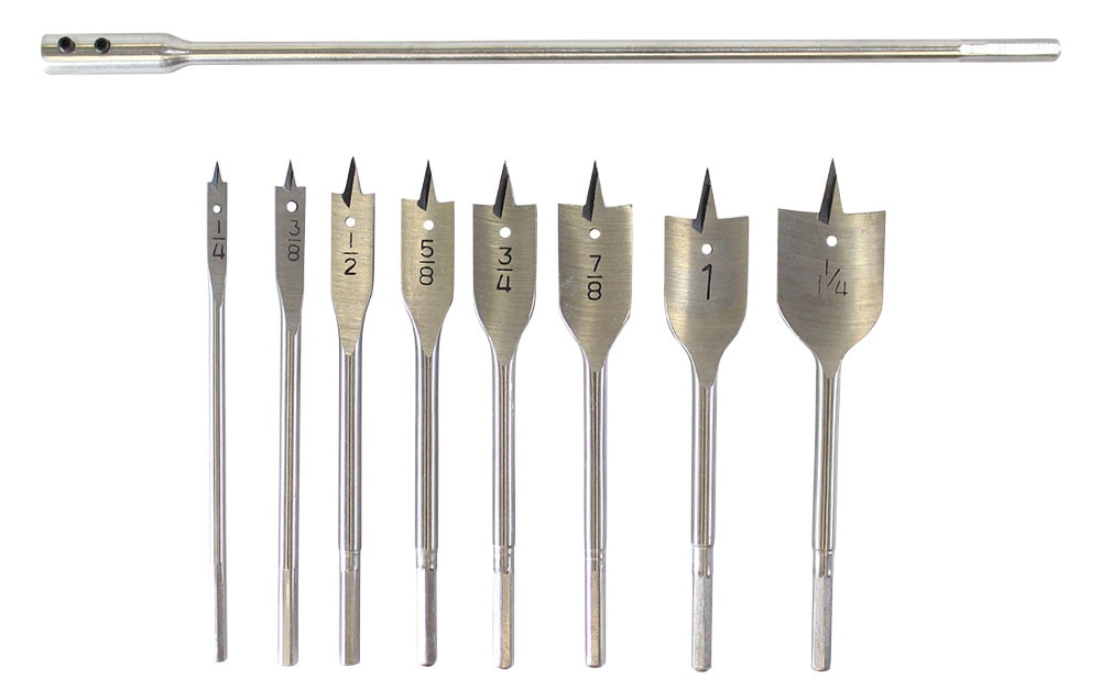 WEDGE 10 Piece Wood Flat Bit Set 8 Bit Sizes from 1/4 quot (0 6 cm) to 1