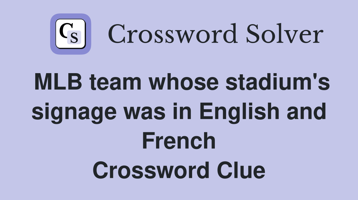 MLB team whose stadium #39 s signage was in English and French Crossword