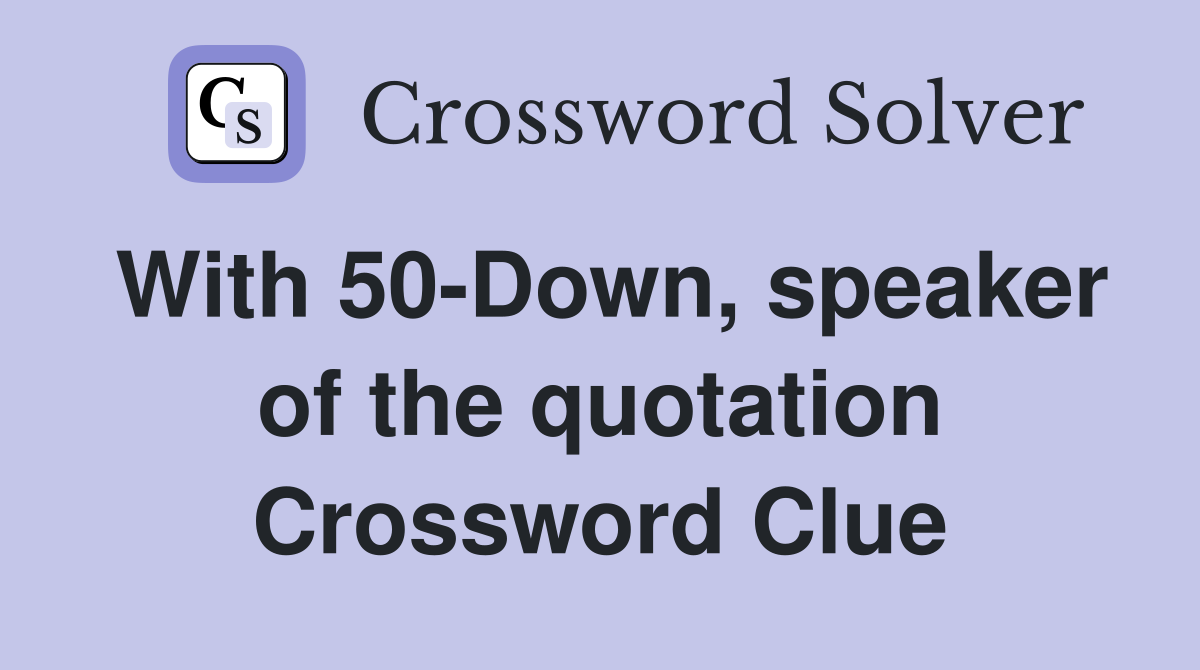 With 50 Down speaker of the quotation Crossword Clue Answers