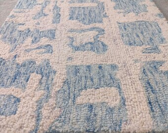 Moroccan Rug Blue Grey Berber Carpet Genuine Wool Rug Handmade