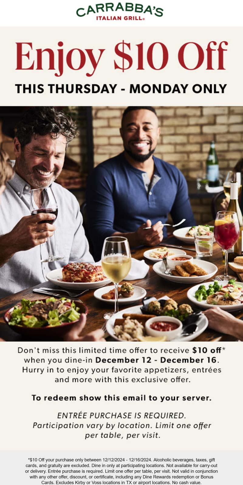 $10 off dinner at Carrabbas restaurant #carrabbas The Coupons App®