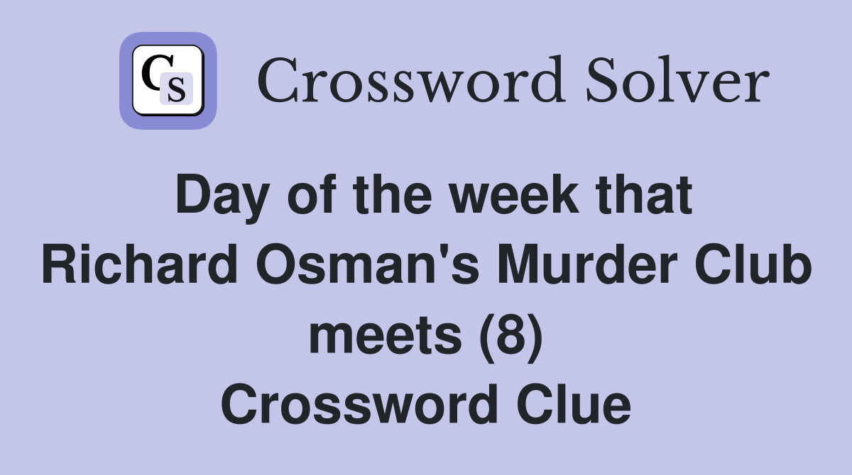 Day of the week that Richard Osman s Murder Club meets (8) Crossword