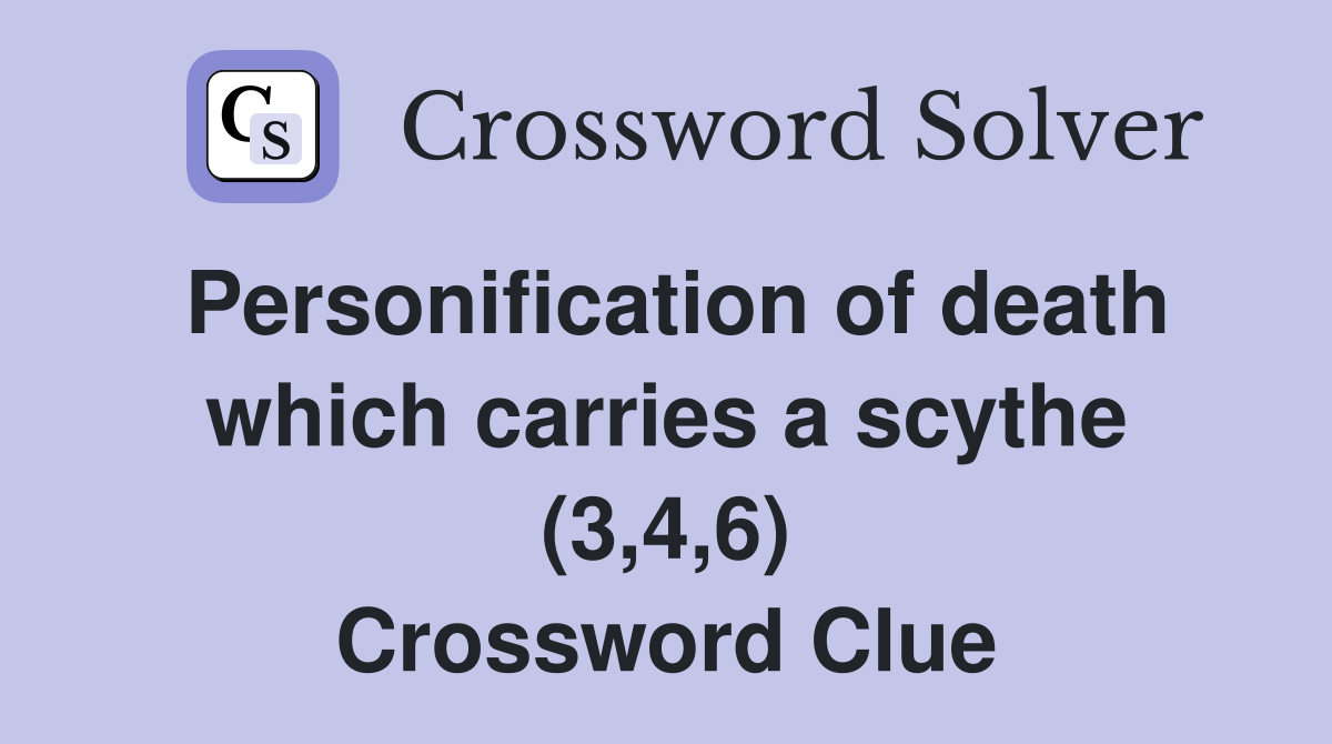 Personification of death which carries a scythe (3 4 6) Crossword