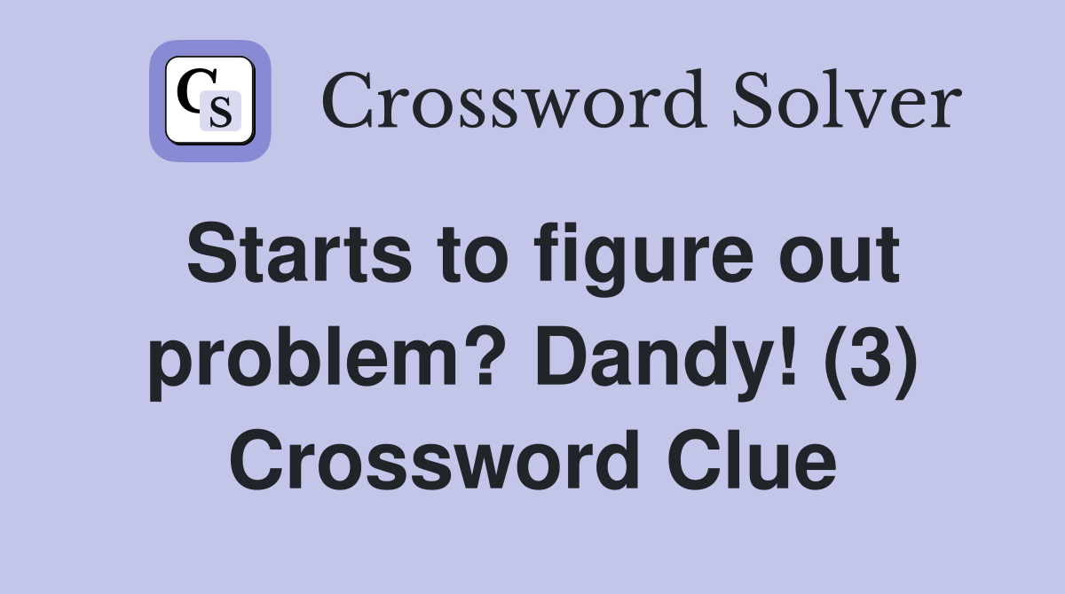 Starts to figure out problem? Dandy (3) Crossword Clue Answers
