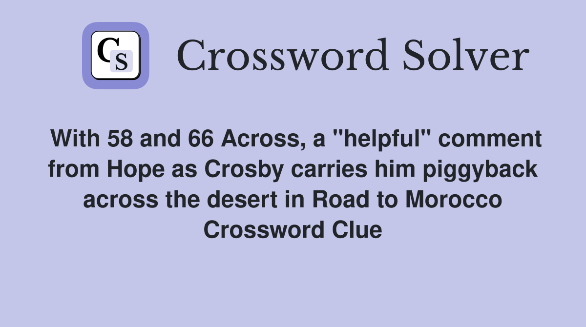 With 58 and 66 Across a quot helpful quot comment from Hope as Crosby carries