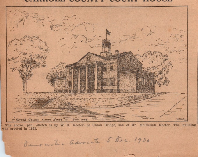 1930 Carroll County Court House Sketch by W H Keefer Newspaper