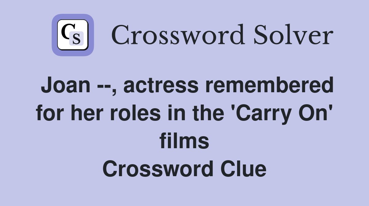 Joan actress known for her roles in the Carry On films (4) Crossword