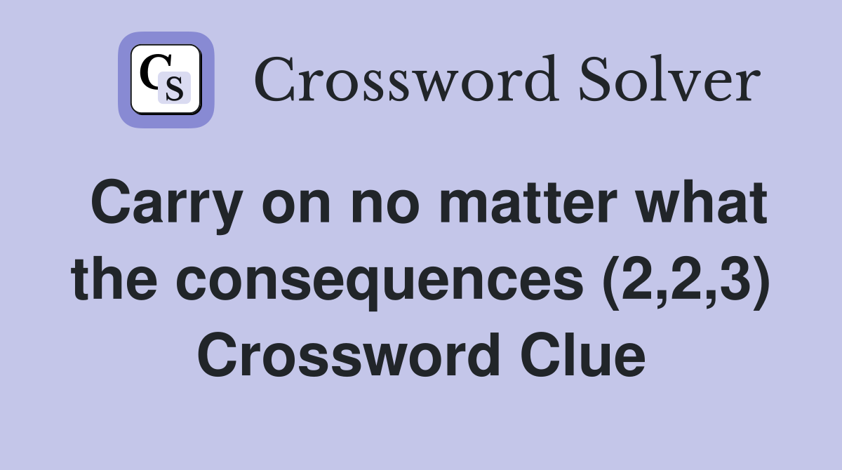 Carry on no matter what the consequences (2 2 3) Crossword Clue