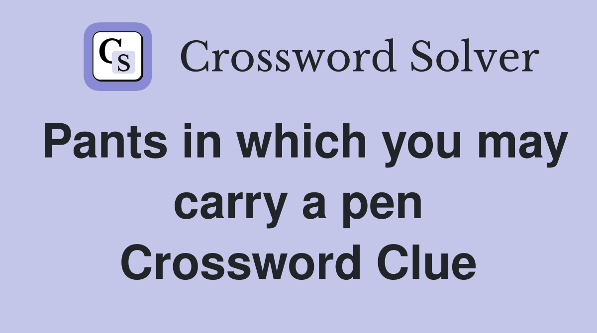 Pants in which you may carry a pen Crossword Clue Answers Crossword