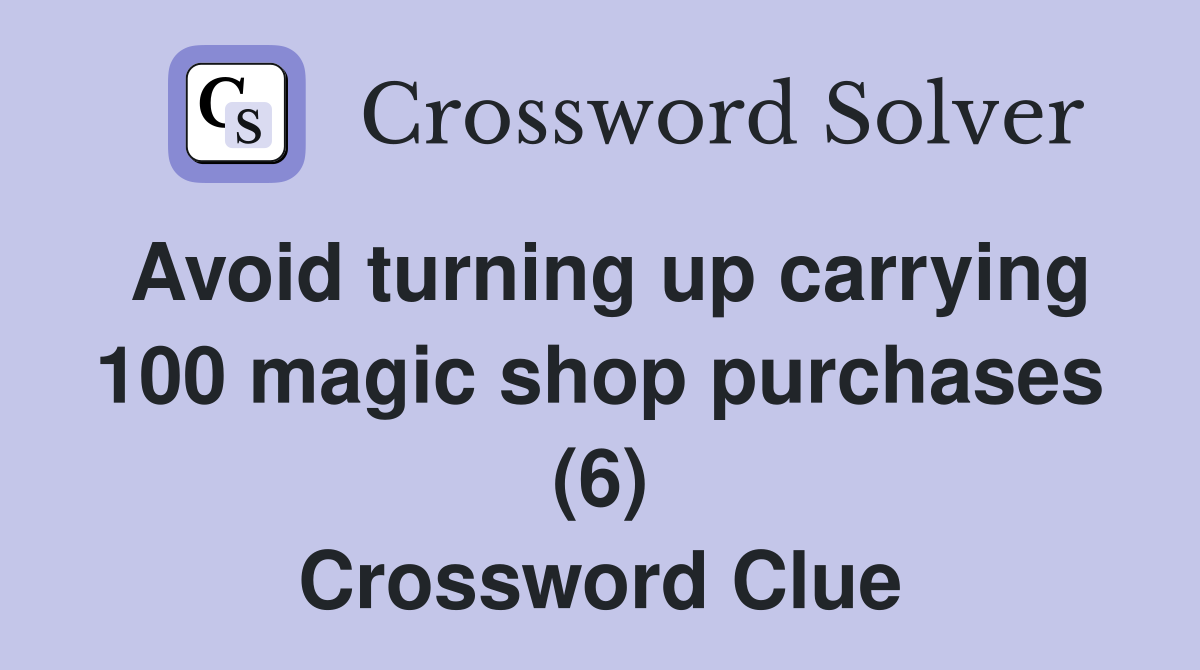 Avoid turning up carrying 100 magic shop purchases (6) Crossword Clue