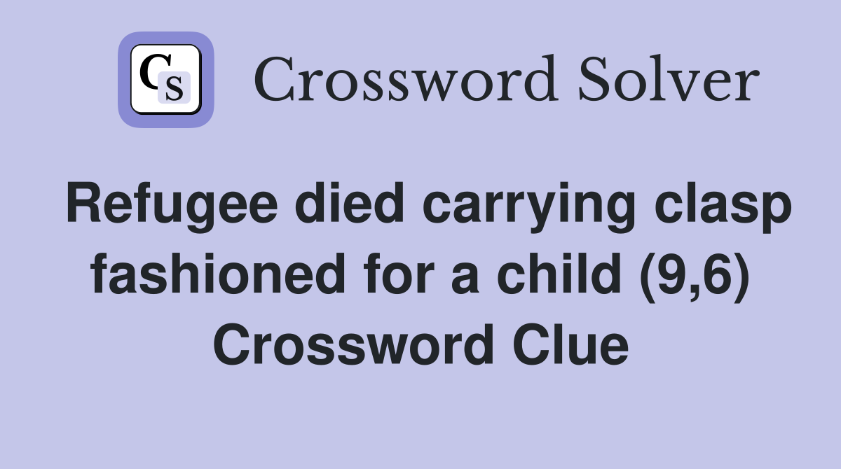 Refugee died carrying clasp fashioned for a child (9 6) Crossword
