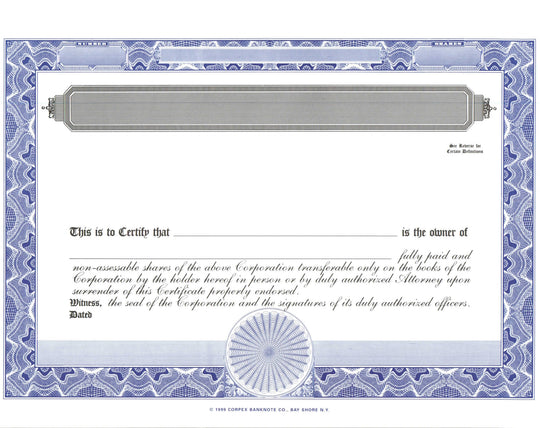 E Stock Certificates Electronic Stock Certificates Blank Standard
