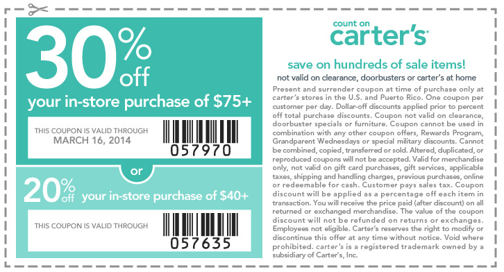 Printable Coupons In Store Coupon Codes: Carters Coupons