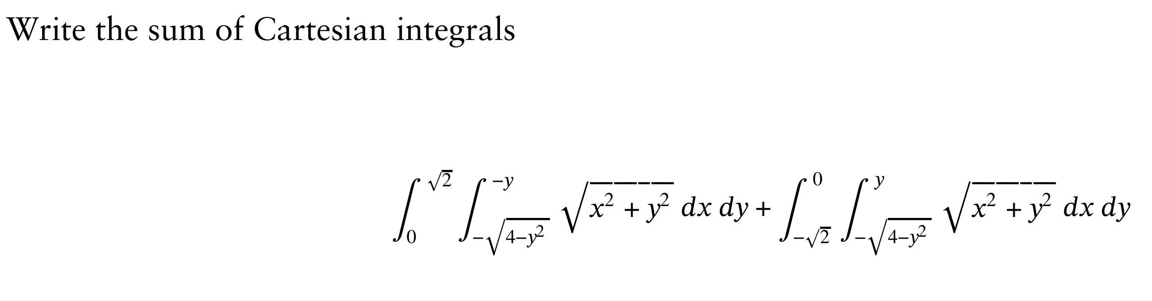 Solved Write the sum of Cartesian integrals Chegg com