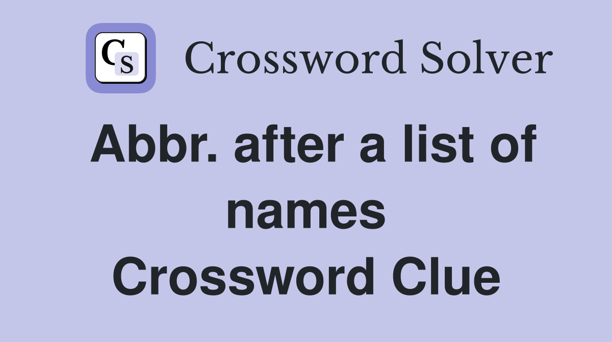 Abbr after a list of names Crossword Clue Answers Crossword Solver