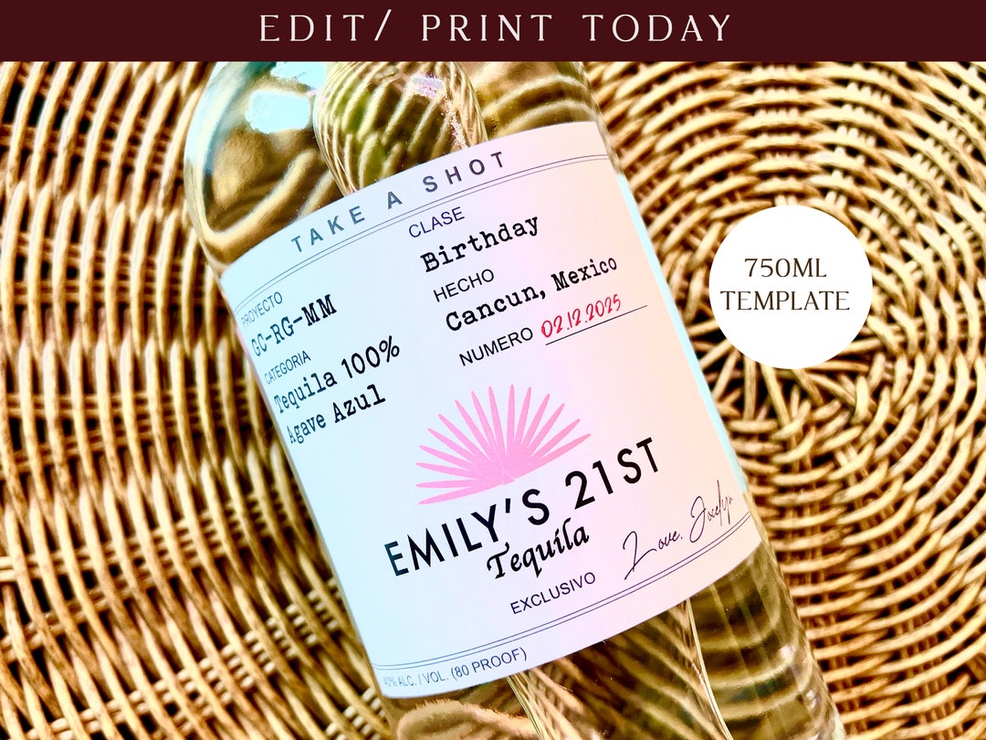 Custom 750ml Tequila Birthday Label Template (digital Download) Etsy