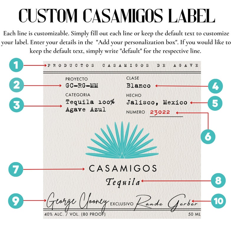 Etiqueta de Tequila Casamigos para Personalización Etiqueta Casamigos