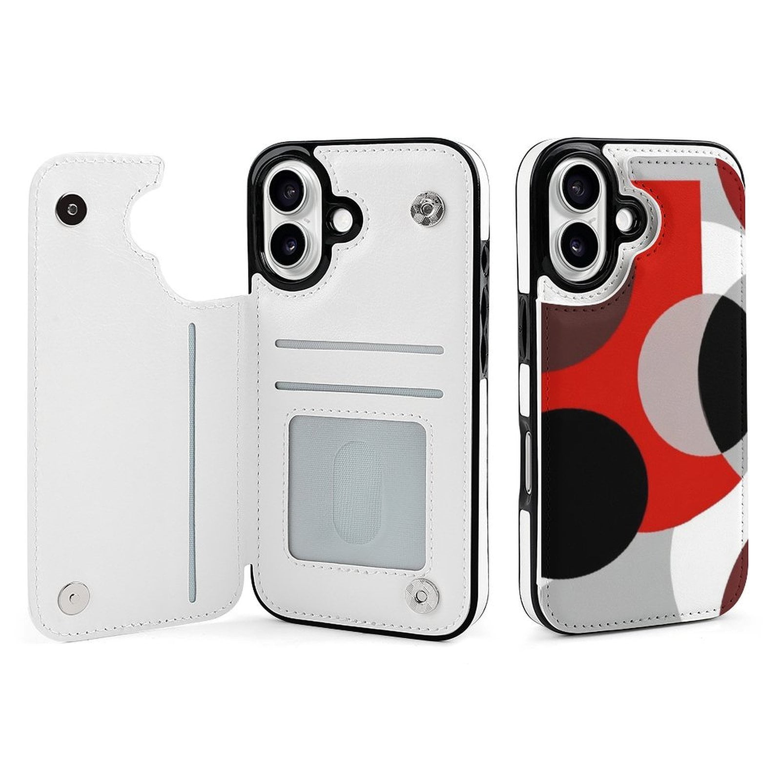 Geometric Dark Red Gray 2 Leather Wallet Case for iPhone 15 14 13 12 11