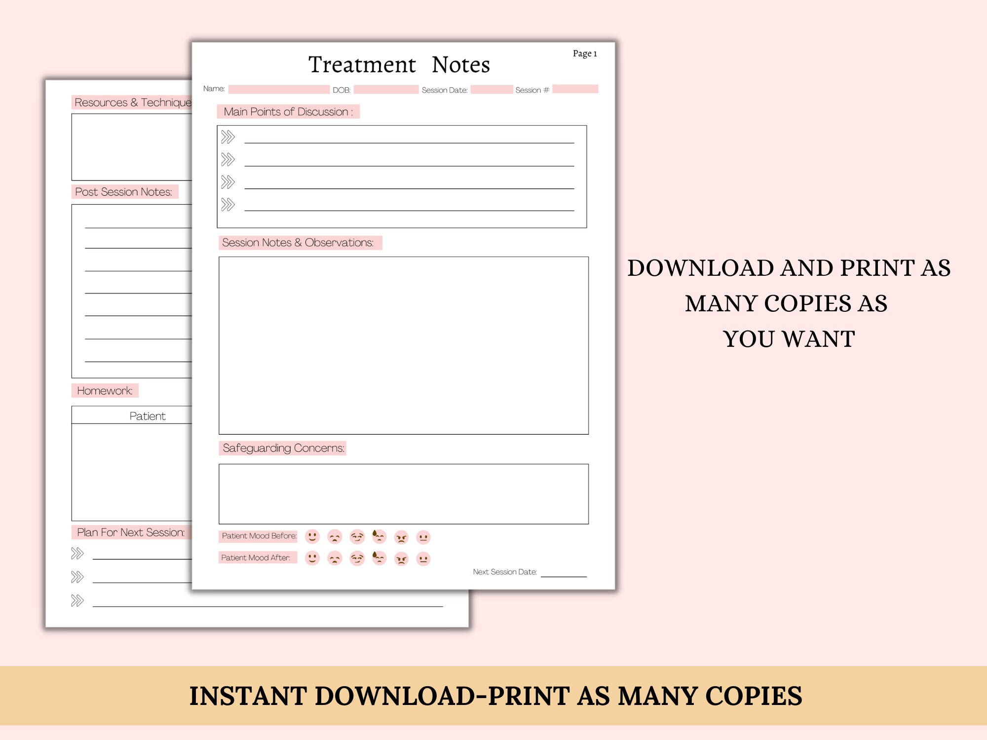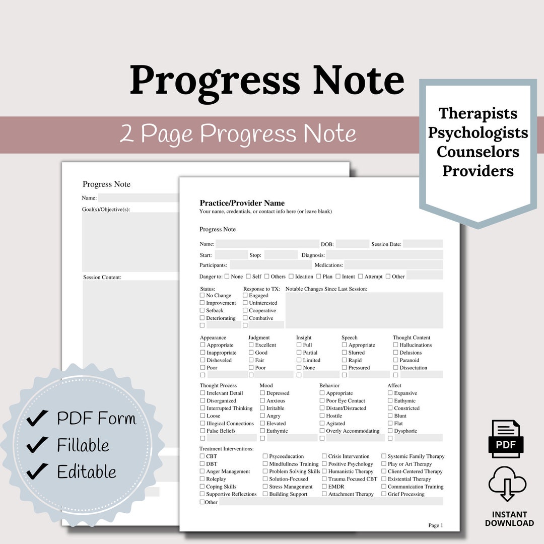 Progress Notes for Therapists Printable Fillable Template Etsy UK